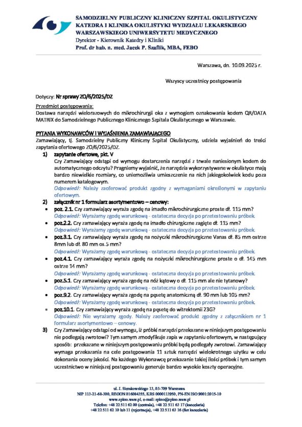 Katedra i Klinika Okulistyki Wydziału Lekarskiego Warszawskiego Uniwersytetu Medycznego