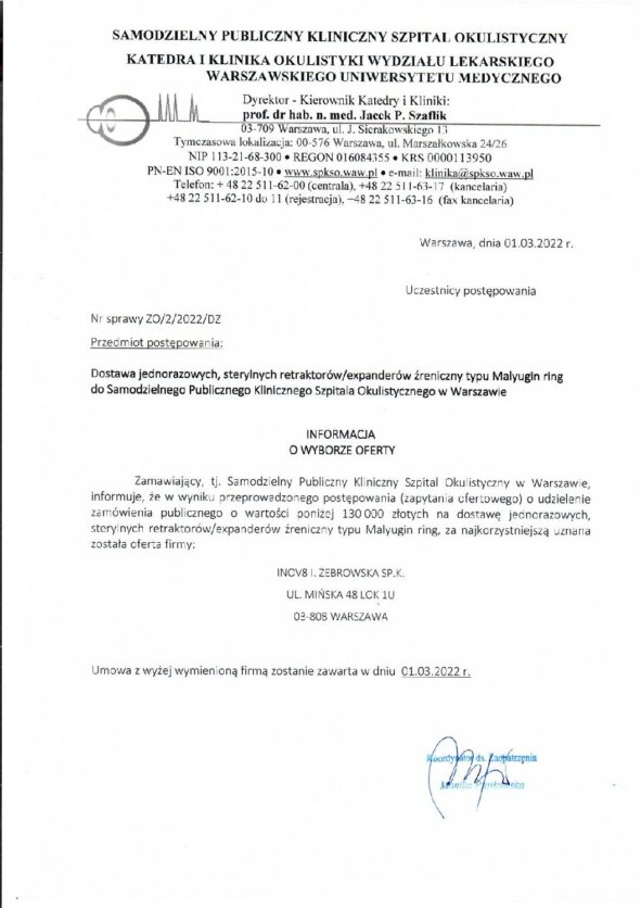 Katedra i Klinika Okulistyki Wydziału Lekarskiego Warszawskiego Uniwersytetu Medycznego